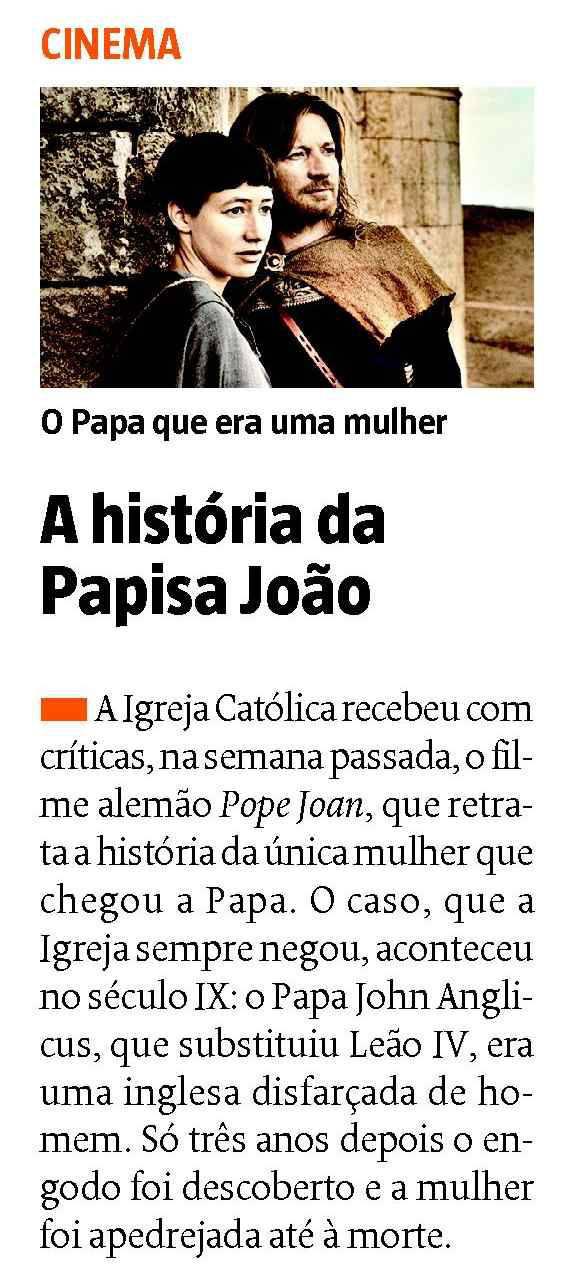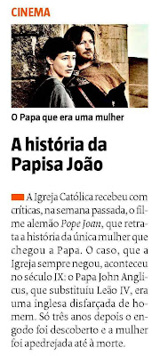 A lenda diz que entre Leão IV e Bento III houve a Papisa Joana - ou Papisa João, segundo a notícia. A História e a Igreja dizem que não. Mas se a lenda o diz, filme-se a lenda, parafraseando um dito célebre dum filme de John Ford.