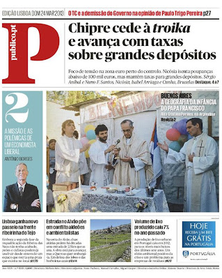 - nas páginas 20 a 27, uma reportagem sobre Jorge Mario Bergoglio em Buenos Aires. A capa do caderno principal remete para esta peça assinada por Ana Cristina Pereira.